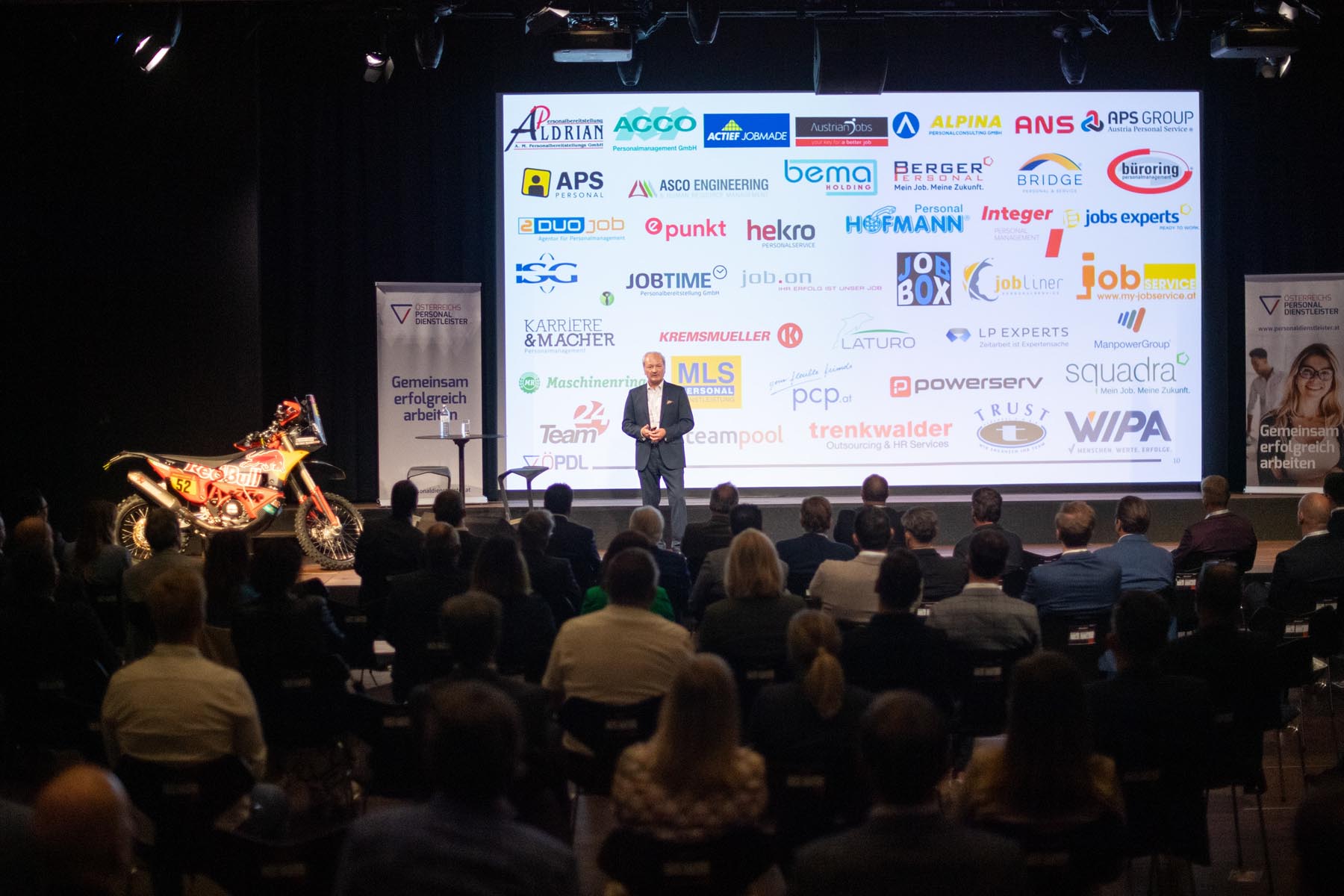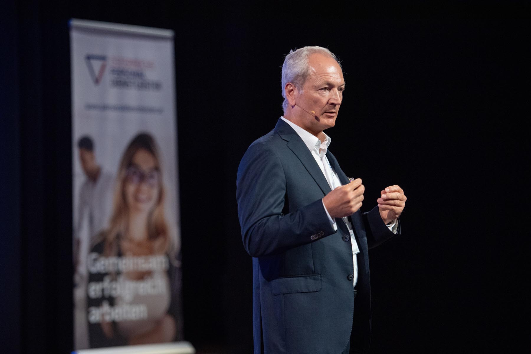 Anschließend gab es im 20 Minuten Takt drei brandaktuelle Fachvorträge. Thematisch ging es bei Alexander Liske von unserem Fördermitglied ProSolution um die Digitalisierung als Chance – Die Prozesse der Personaldienstleister müssen unabhängig von Ort und Zeit funktionieren, die Informationen müssen digital verfügbar sein – nur damit ist „Home-Office“ effektiv gewährleistet. Markus Brandl vom Vertriebsunternehmen Truchseß und Brandl hat am Beispiel eines Einkäufers mit Briard-Leidenschaft (Briard = eine Hunderasse) erläutert, wie man wirklich zu Kundenabschlüssen kommt und dass es dabei immer um den Sympathiefaktor geht. Und Meinungsforscher Herbert Kling hat in seiner Präsentation zum Thema Fachkräftemangel unterstrichen was es braucht, um der Bevölkerungspyramide zum Trotz den Mitarbeiterpool durch sinnstiftende Kommunikation, Teilzeitangebote und optimales Recruiting von Jung bis Alt zu besetzen.