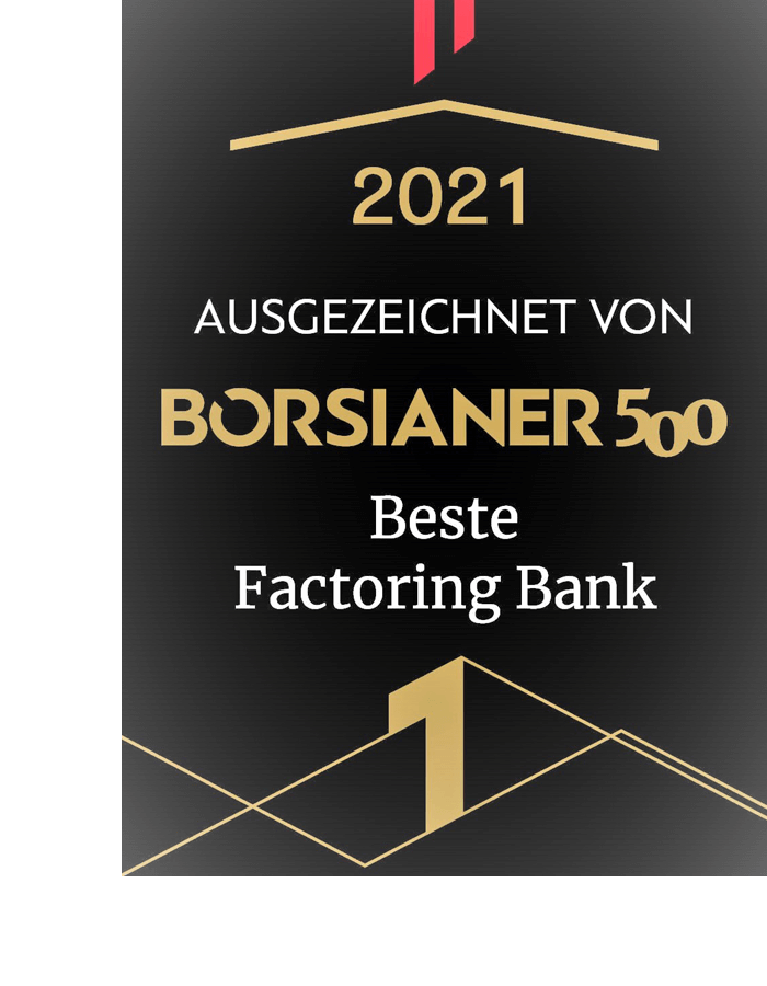 All das macht uns zu Österreichs Nr. 1 – wie die Auszeichnung als „Beste Factoring Bank Österreich“ durch das Finanzmagazin „Börsianer“ zum zweiten Mal in Folge beweist.
